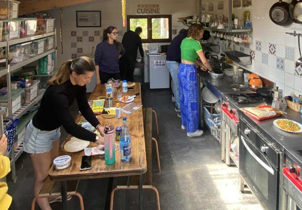 Une cuisine collective est disponible pour faire ta popote. Partager est encouragé !